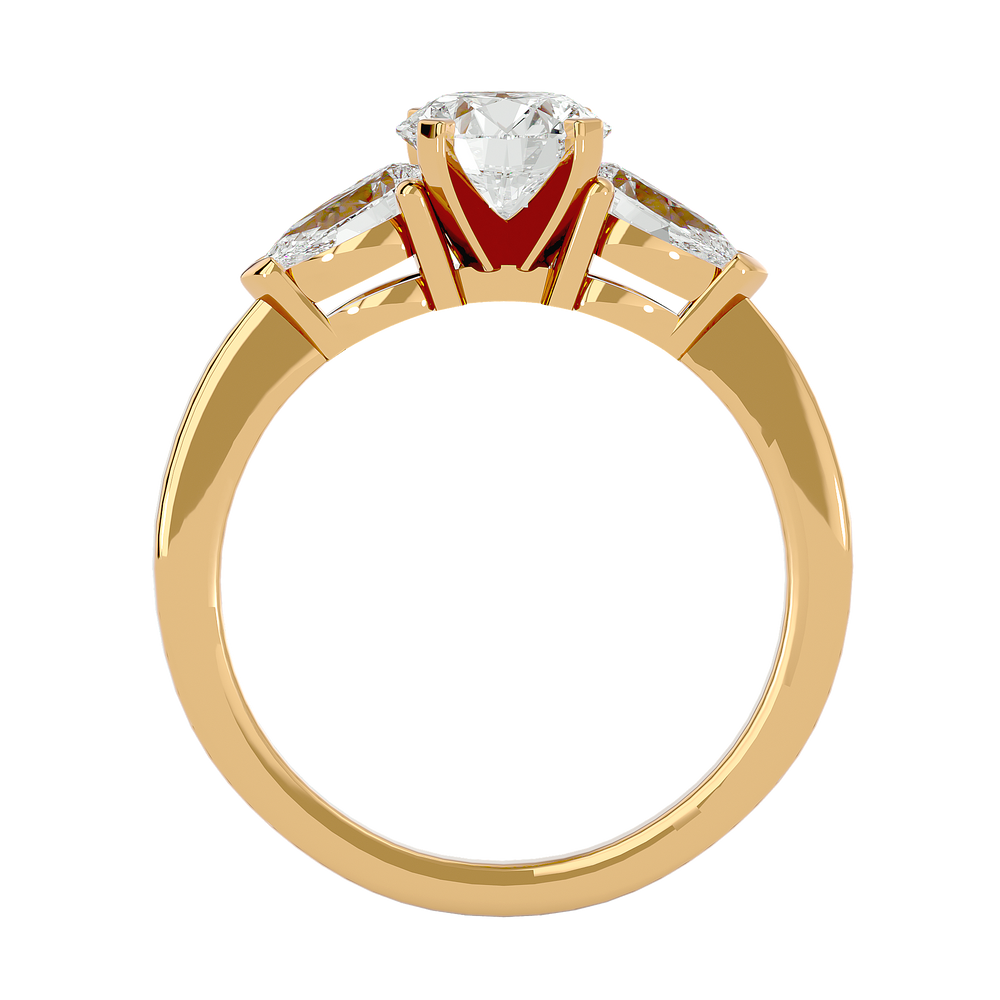 Janelle Three Stone Ring brings a touch of luxury to your everyday attire, infusing it with creative elegance. Crafted with gold and diamonds, it's an ideal accessory for any occasion.