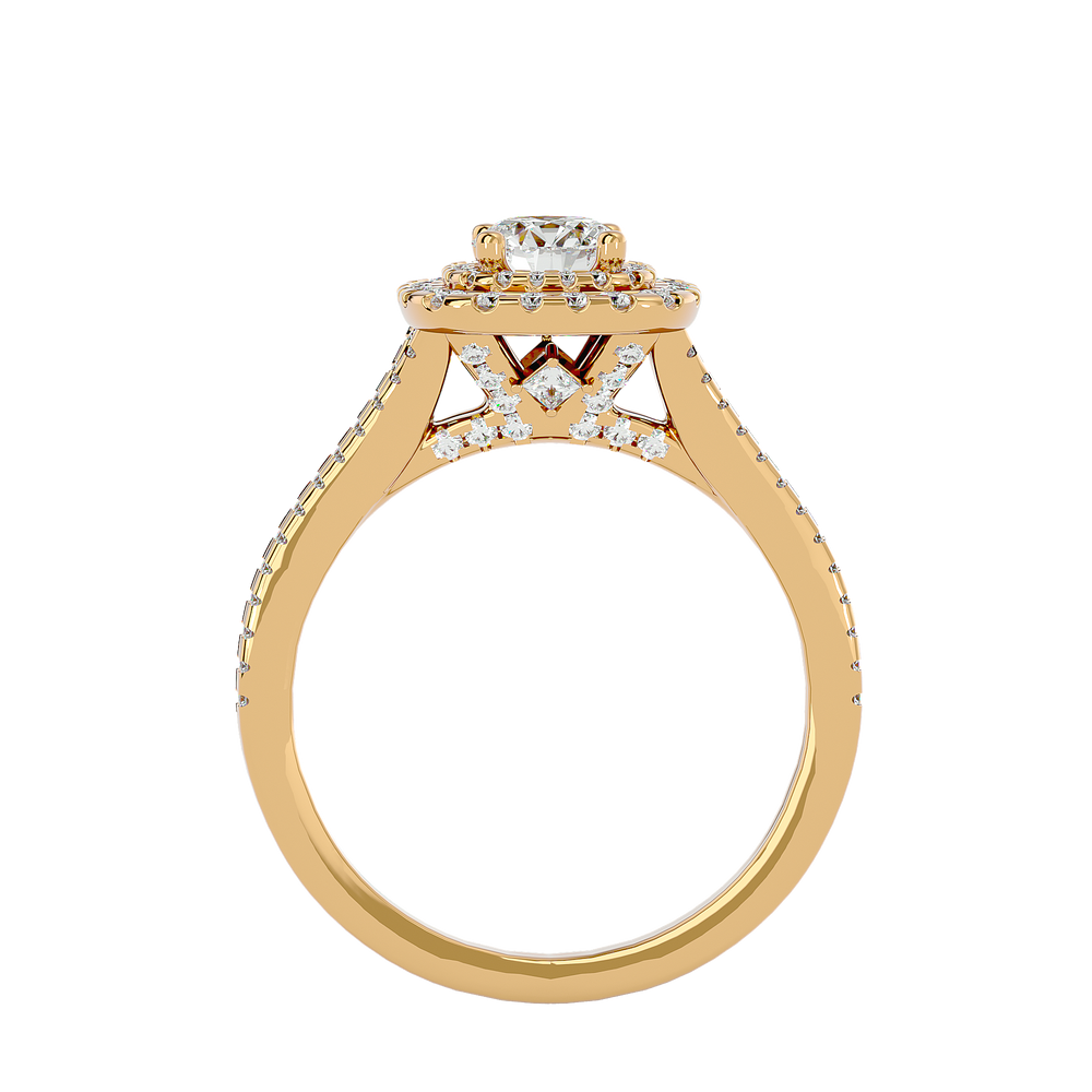 Malaya Diamond Halo Ring brings a touch of luxury to your everyday attire, infusing it with creative elegance. Crafted with gold and diamonds, it's an ideal accessory for any occasion.